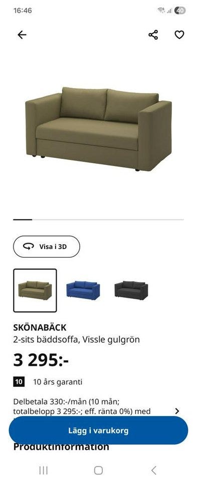 Tips: Tänk på att mäta utrymmet där bäddsoffan ska stå för att säkerställa att den passar.