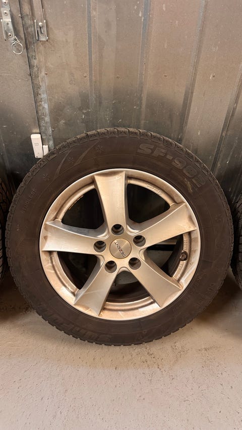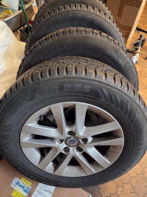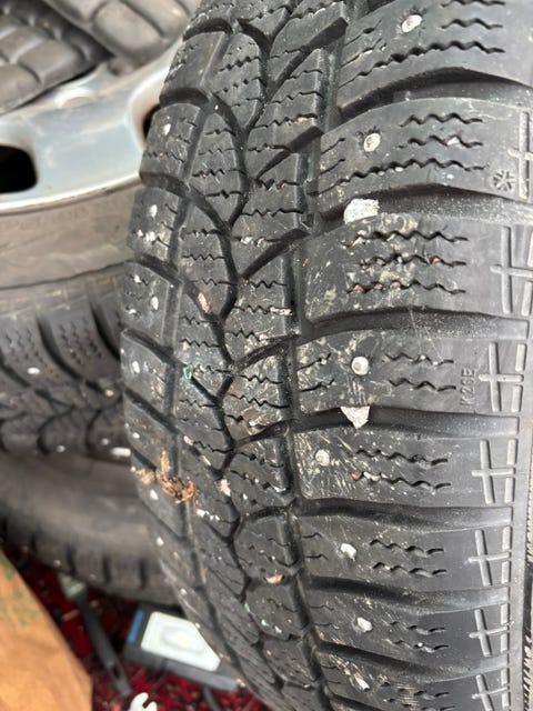Vinterdäck med fälgar.