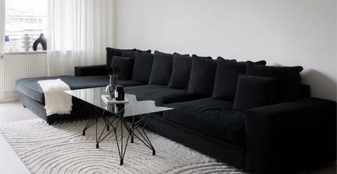 Mörk grå soffa och soffbord