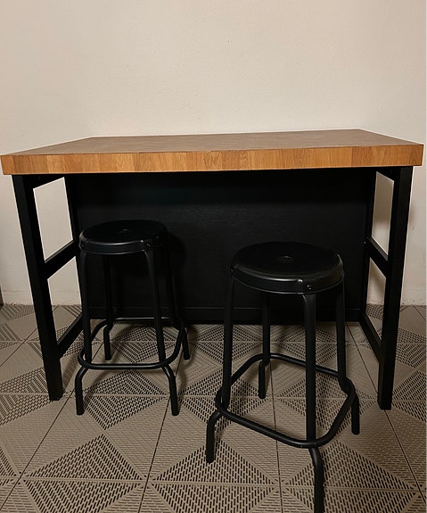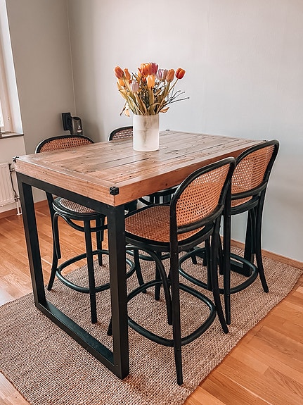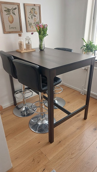 Matbord trä svart metallstativ