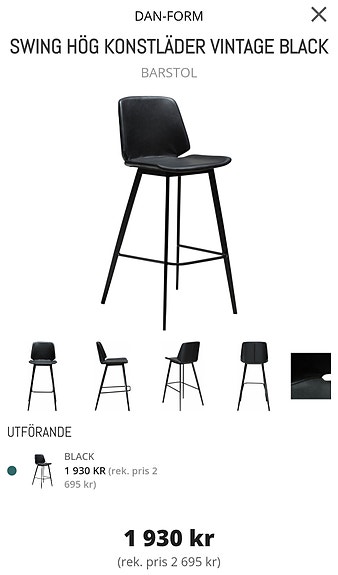 Kansas barstol 66 cm svart