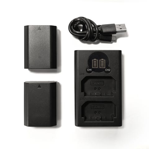 Batterier och laddare med väska
