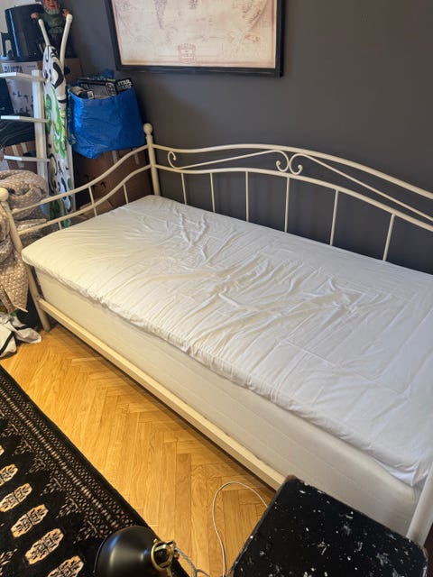 Fin bäddsoffa med överdrag i linne