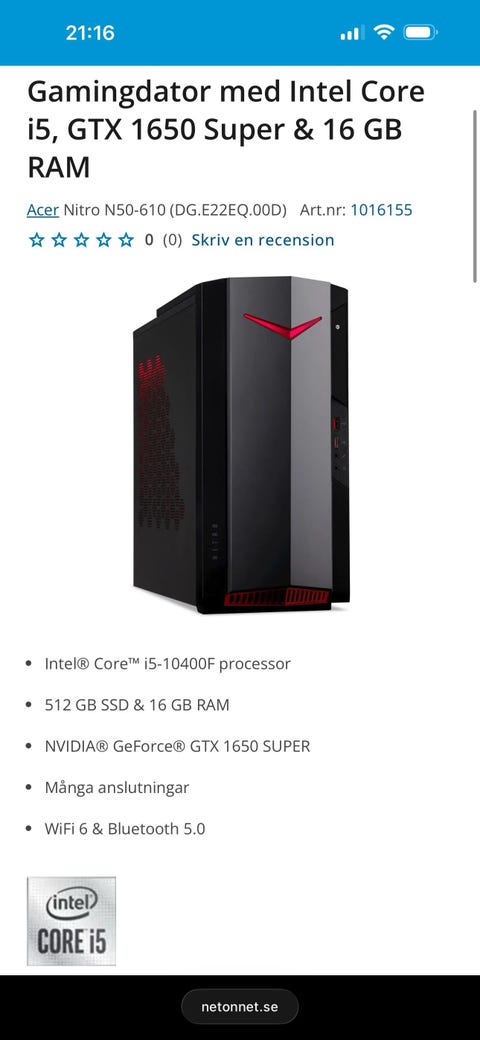 1 600 krAcer stationär dator Intel Core i5 16 GB RAM 512 GB SSD AcerSorunda2 timLägg till i favoriter.
