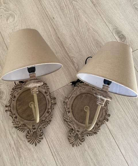 TVÅ VÄGGLAMPOR I AVLUTAD TRÄ
