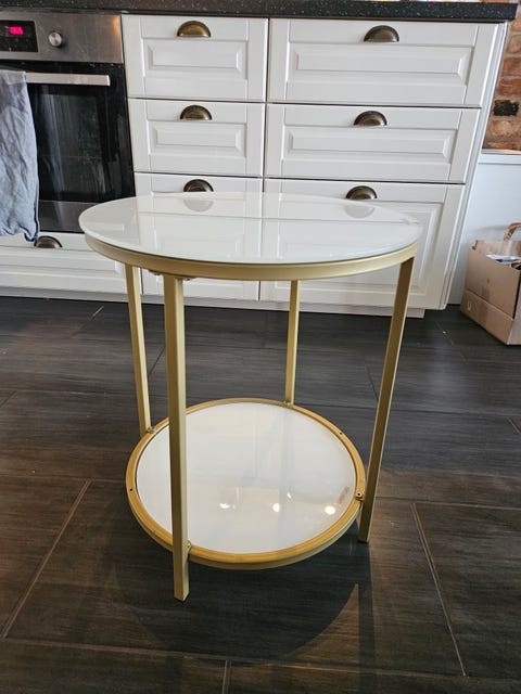 Runt, vitt matbord