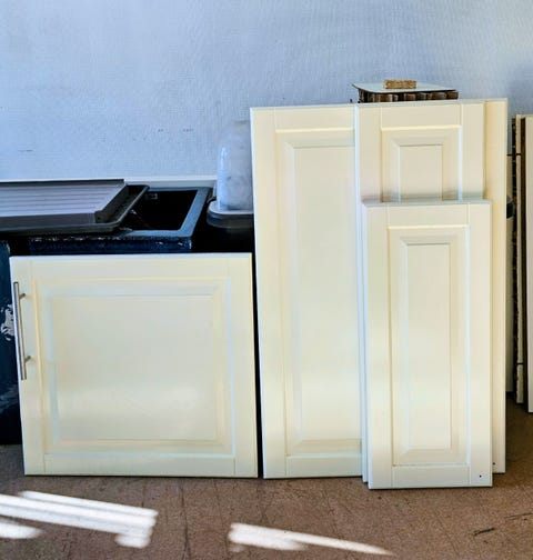 Genom att köpa delar av köksinredningen begagnad, som köksskåpsluckor, skiljeväggar eller bänkskivor, kan du spara pengar. Fundera också på om en totalrenovering verkligen behövs eller om det räcker med att byta ut köksluckorna på dina befintliga skåp. När du överväger att köpa begagnad köksinredning eller köksstommar - tänk på att kontrollera mått, material och skicket.