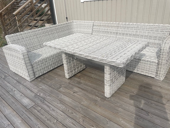 6 000 krHörnbaserad loungesoffa för uteplats med bord och dynor rotting gråSegeltorp1 dagLägg till i favoriter.