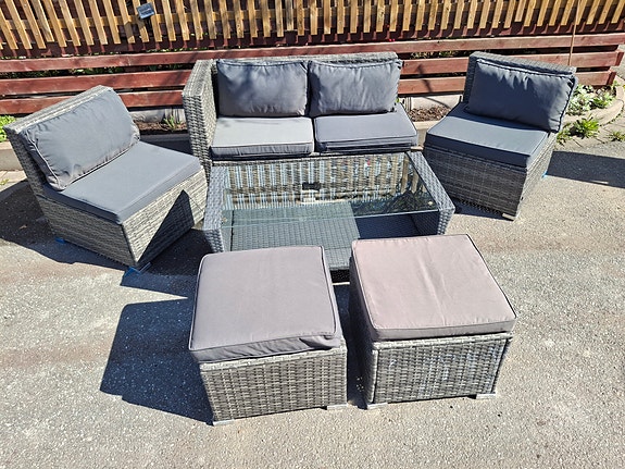 1 700 krUtemöbelgrupp soffa fåtöljer bord konstrotting grå dynorHelsingborg2 dagarLägg till i favoriter.