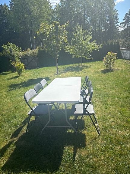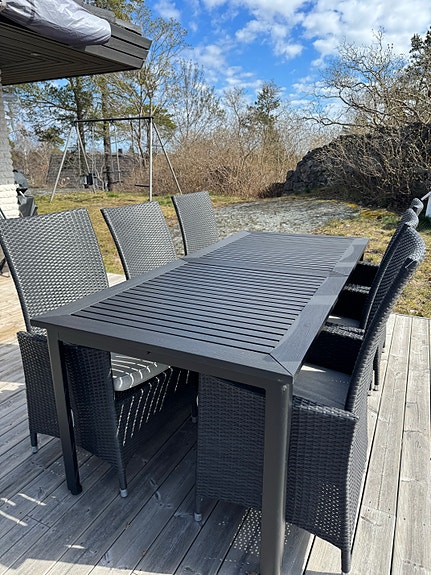 Matgrupp utomhus bord och 6 stolar svart/grå metall