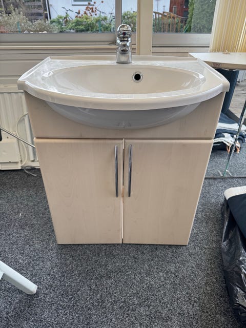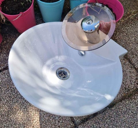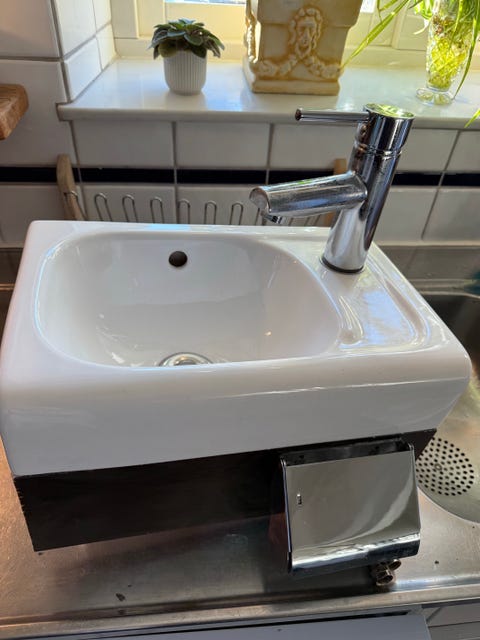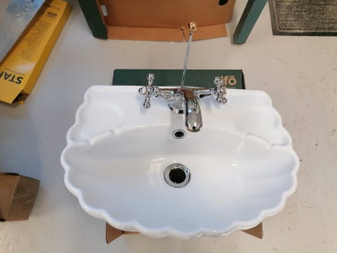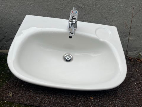 Handfat med blandare i perfekt storlek och stil kan hittas begagnat
