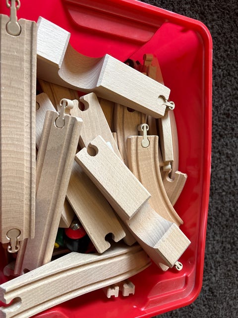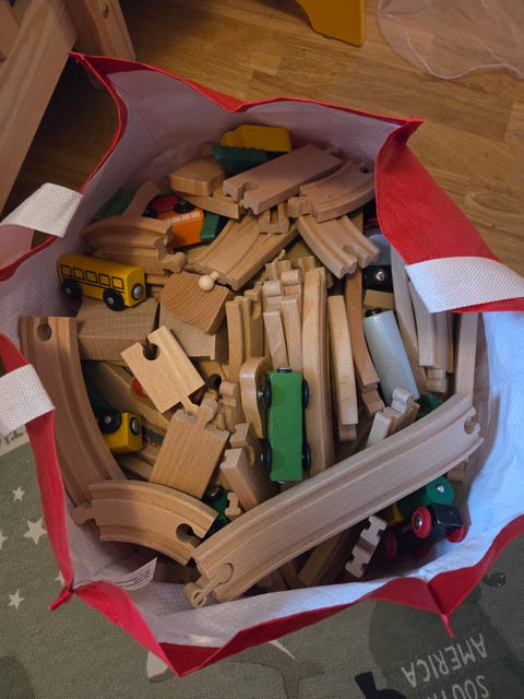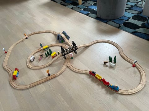 En tågbana eller bilbana i trä kan vara en älskad leksak i många år
