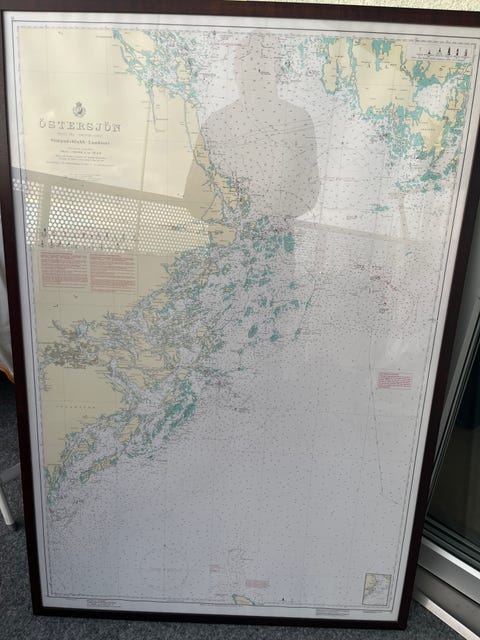 Sjökort i mahognyram