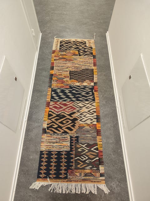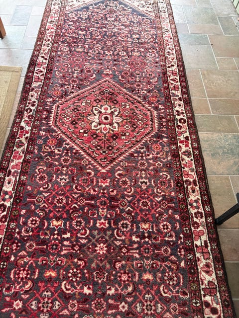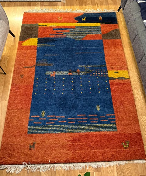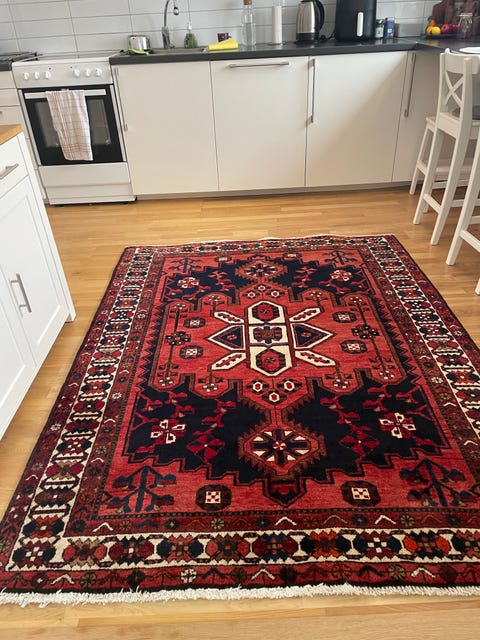 röd matta, vintage-stil.