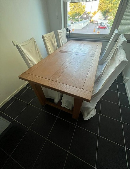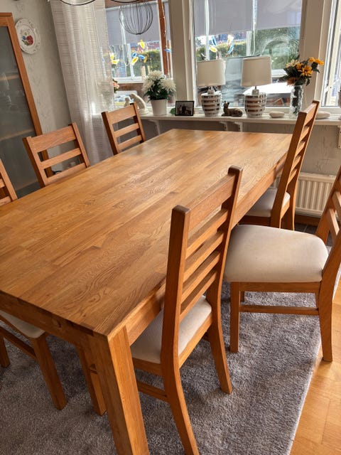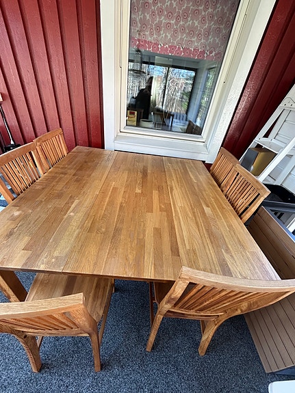 Matbord oljad ek+6 stolar