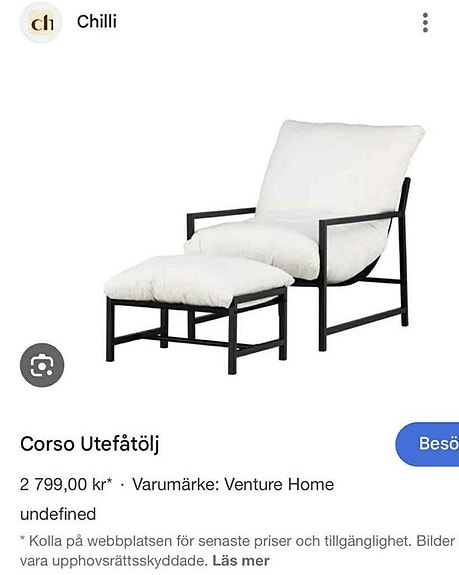 1 000 krfåtölj med fotpall Corso ute möbelLaholm18 marKöp nuLastbil i rörelseKan skickasLägg till i favoriter.Öppna annons