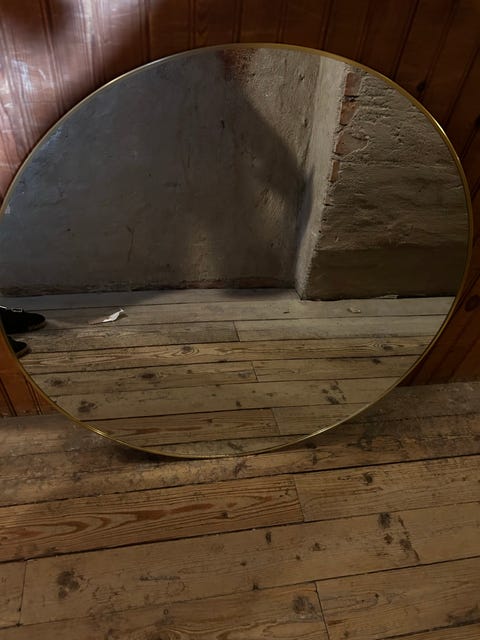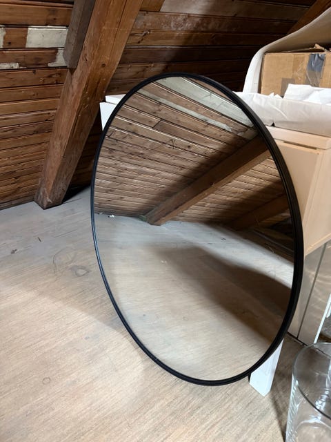 En rund spegel kan bryta av det fyrkantiga och lite hårda uttrycket