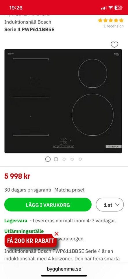 Tips: Kontrollera att spisplattan eller spishällen har rätt anslutning för ditt kök eller din båt.