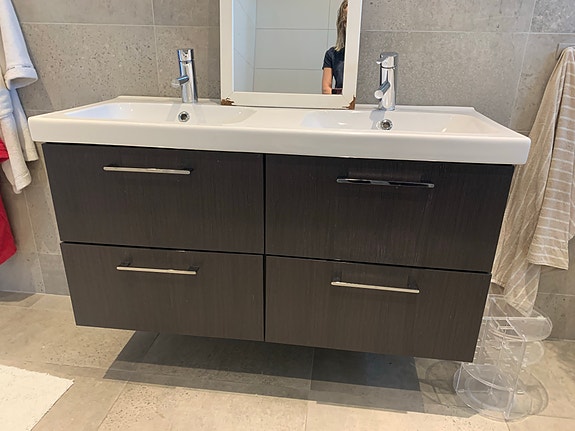 2 000 krBadrumskommod med dubbel tvättställ vit topp och mörk träfanerUlricehamn7 timLägg till i favoriter.