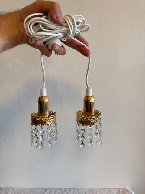 7 000 krTaklampor i Bohemia kristall, mässing & trä – komplett sett• vintage 60/70-talNorrköping07.12.25Lägg till i favoriter.