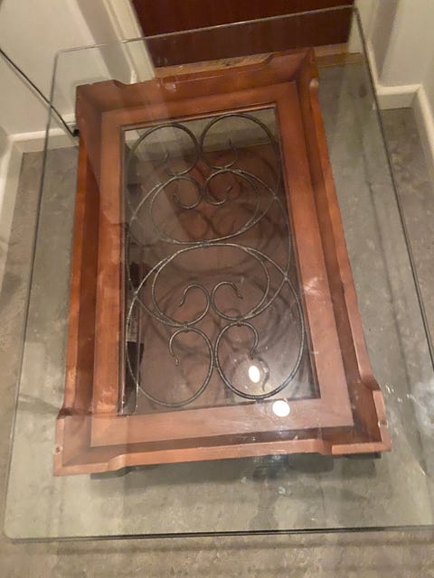 Bord i konstrotting med glaskiva