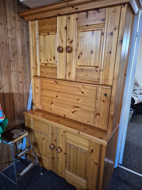 1 000 krTräskåp Hörnskåp i furu med hyllorBromma4 dagarKöp nuLastbil i rörelseKan skickasLägg till i favoriter.