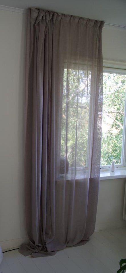 350 krSkräddarsydda skira gardiner + kanal – polyester voile – 2 st längderStockholm6 dagarLägg till i favoriter.