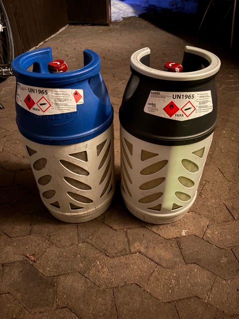 Gasolkamin med gasolflaska