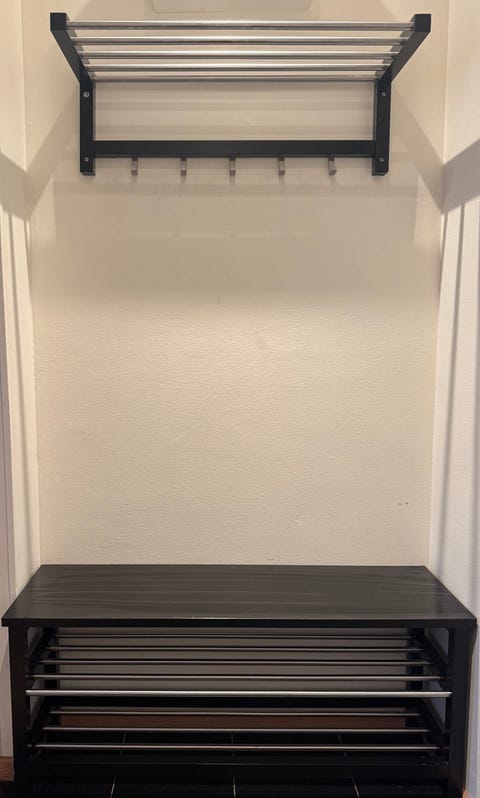 Skoställ och hatthylla