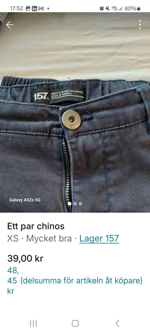 39 krMörkblå chinos i bomull storlek XS herrStl. XSStockholm18 timKöp nuLastbil i rörelseKan skickasLägg till i favoriter.