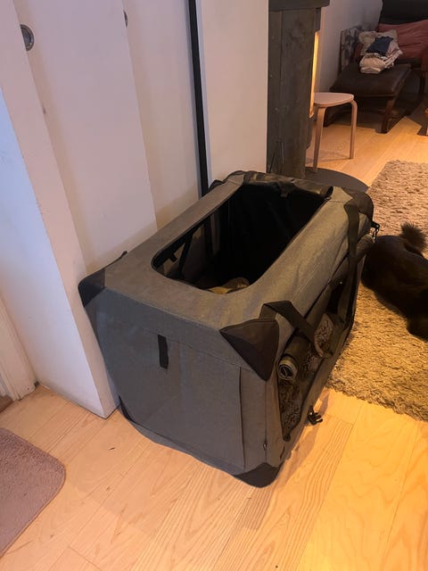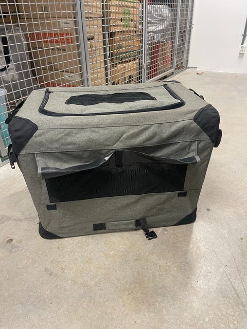 Grå bärbar hundbur i tyg