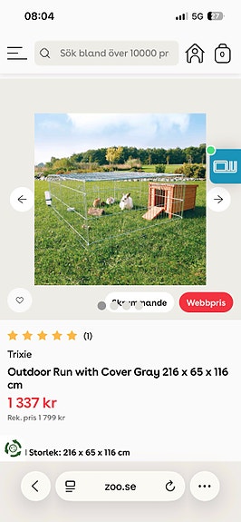 700 krTrixie utehage med tak för kanin 216 x 65 x 116 cm grå metallUddevalla13 aprLägg till i favoriter.