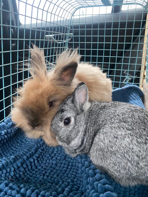 Två kaniner och stor bur