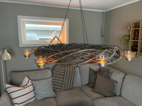 Rustik takkrona med ljushållare