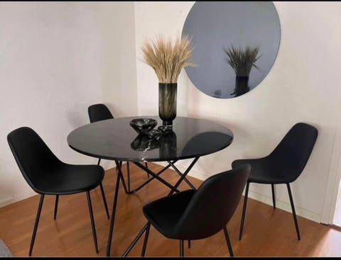 Marmorbord och läder stolar