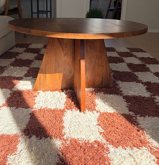 Stort runt matbord i massivt trä
