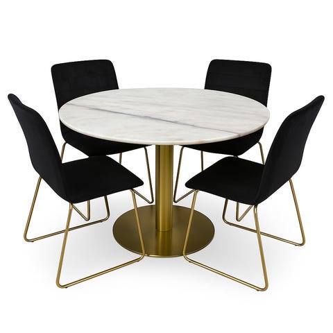 Marmor matgrupp med fyra stolar