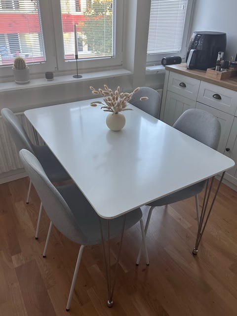 Vit matbord med 4 stolar