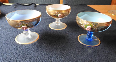 295 kr1 Glasskål flerfärgad på fot. 6 glasskålar flerfärgade med gulddetaljer .Umeå9 febKöp nuLastbil i rörelseKan skickasLägg till i favoriter.