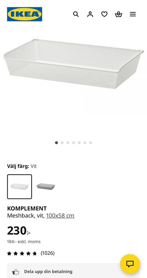 350 krPax komplement vita korgar meshbackar 4 stycken för stomme 75 cm 35 cm djup IKEAJohanneshov4 dagarLägg till i favoriter.