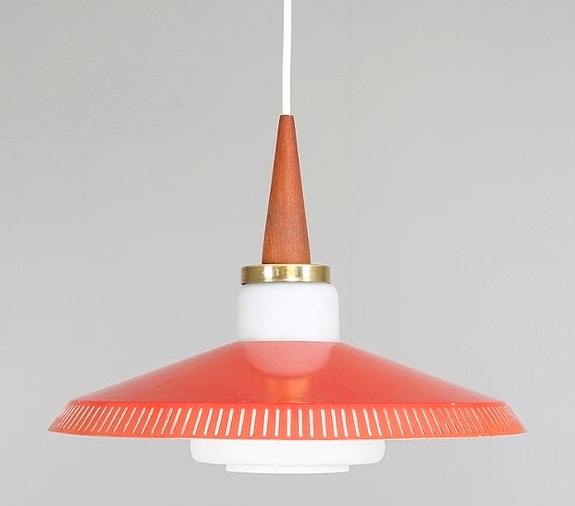 900 krAntik Plafond lampa 50/60-tals röd/orange plåt, trä och porslin Höjd ca 28 cm.Göteborg22 marLägg till i favoriter.