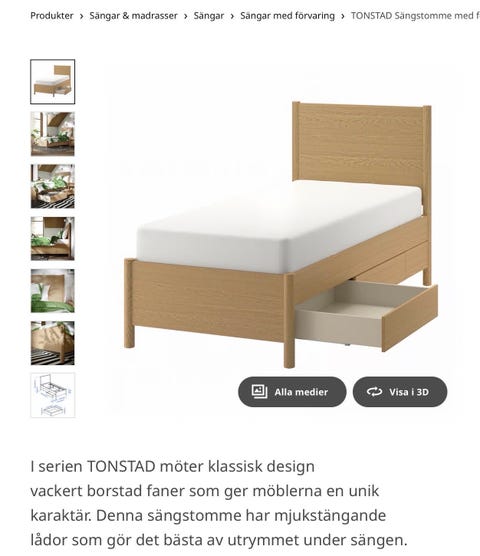Säng 90x200 cm med förvaring