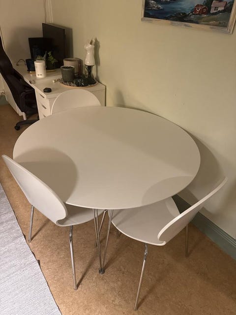 runt martbord med 4 stolar
