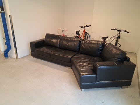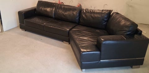 Soffa I skinn med hörn