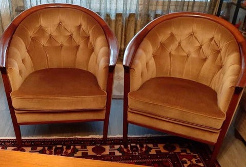 Beige sammet fåtölj och soffa 3-3-1
