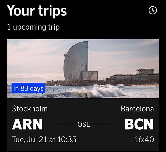 1 600 krFlygbiljett Stockholm (ARN) – Barcelona (BCN) via OsloSundbyberg1 dagLägg till i favoriter.Öppna annons