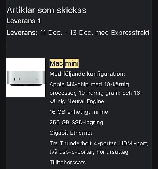 7 000 krApple Mac mini stationär dator M4 16GB 256GB SSD silver AppleÖrebro3 aprKöp nuLastbil i rörelseKan skickasLägg till i favoriter.