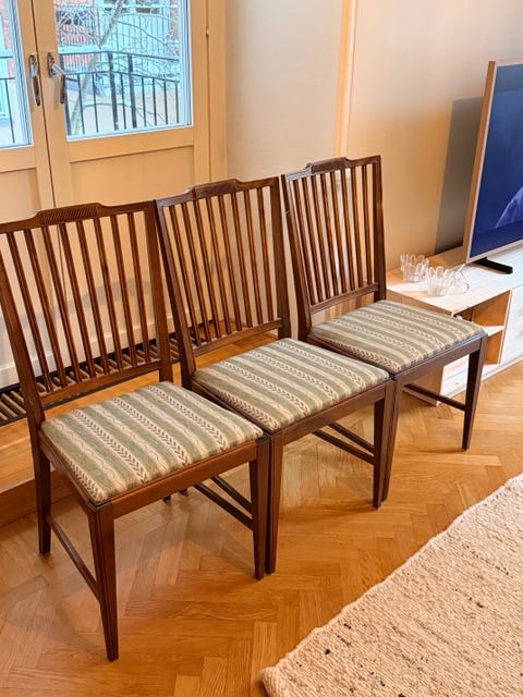 2 000 kr6 st klassiska trästolar med stoppad sits – retro/vintageStockholm17 timLägg till i favoriter.