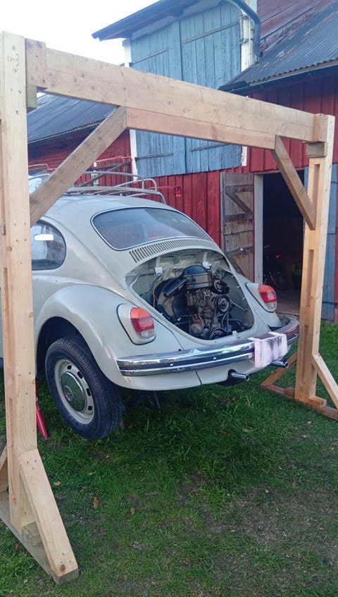 Mororlyftanordning i trä.