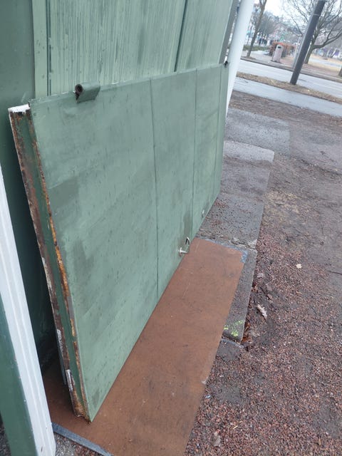 En garageport kan hittas begagnad